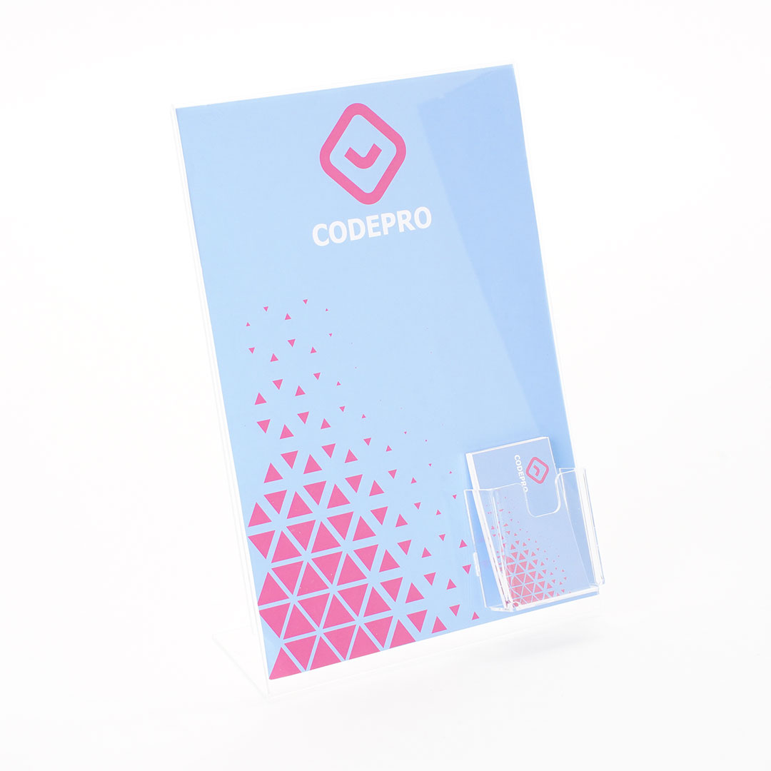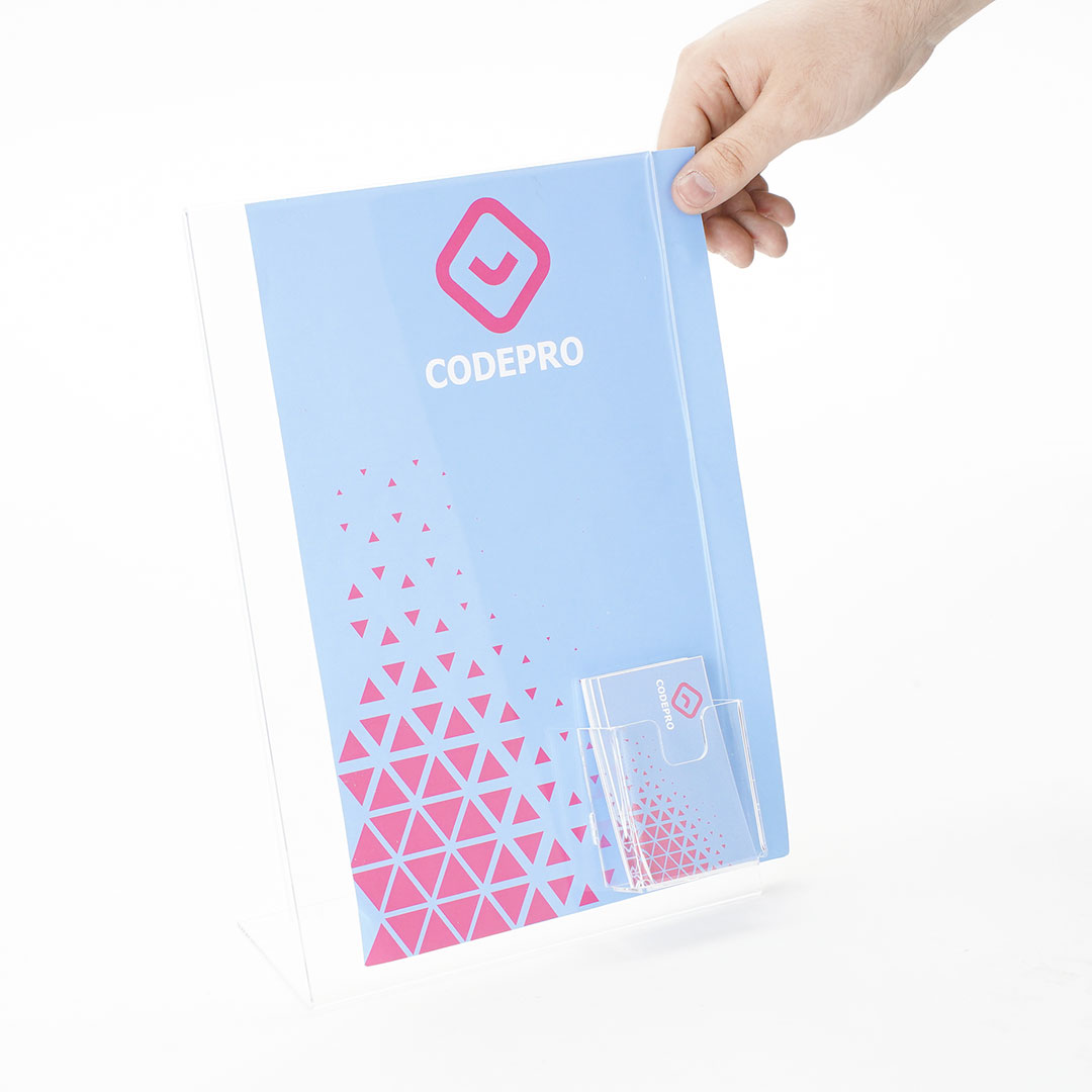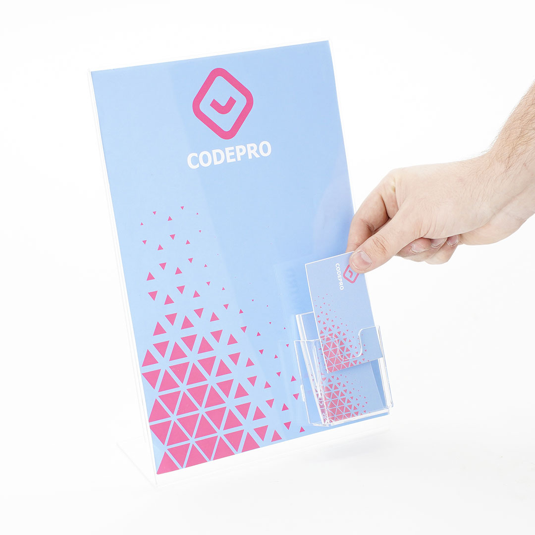 Portavvisi monofacciale base a L formato A4 verticale con tasca porta biglietti verticale