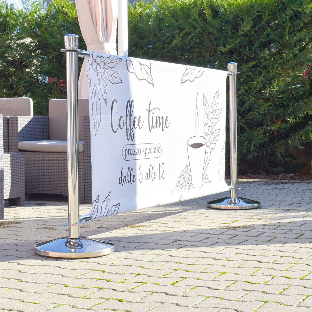 La modularità è il punto di forza di questa transenna pubblicitaria. Collega più colonnine per creare configurazioni su misura, adatte a eventi aziendali, fiere, spazi pubblici o aree ad alto traffico. Questa versatilità la rende uno strumento indispensabile per qualsiasi strategia di marketing.