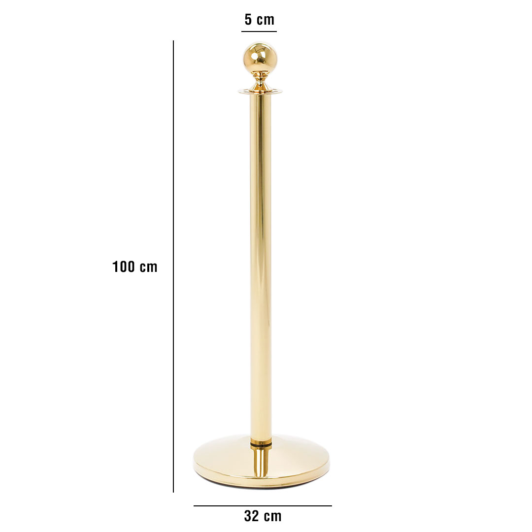 Colonnina con cordone:- palo e base in metallo;- finitura ottone gold;- altezza 1 metro.