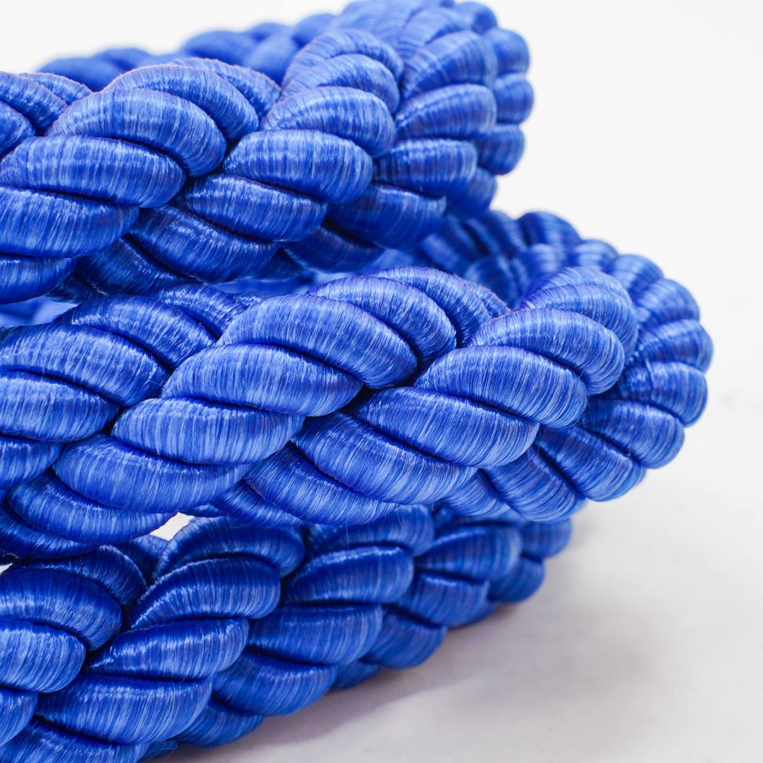 Cordone intrecciato:- venduto a metro lineare;- diametro 30 mm;- disponibile nei colori: blu, rosso, nero;- senza moschettoni.