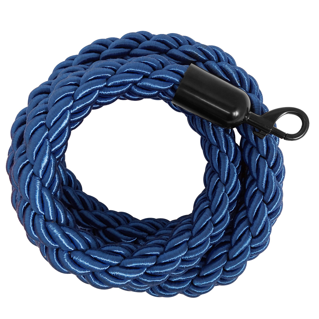 Cordone intrecciato:- con moschettoni finitura nero;- lunghezza 2 metri, diametro 30mm;- colori disponibili: Blu, Rosso o Nero.