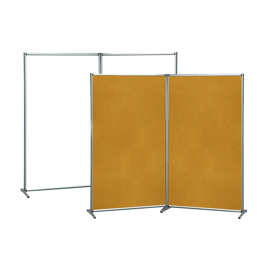 Pannello divisorio Duplex autoportante doppio:- un lato con fondo magnetico e scrivibile;- un lato con fondo in feltro colorato;- struttura in alluminio anodizzato a profilo tondo 30 mm;- piedini fissi verniciati a polveri silver;- dimensione struttura cm 209 x 190.