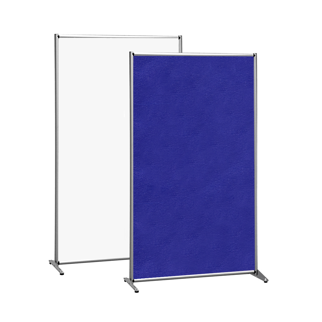 Pannello divisorio Duplex autoportante singolo:- un lato con fondo magnetico e scrivibile;- un lato con fondo in feltro colorato;- struttura in alluminio anodizzato a profilo tondo 30 mm;- piedini fissi verniciati a polveri silver;- dimensione cm 100×190 H.