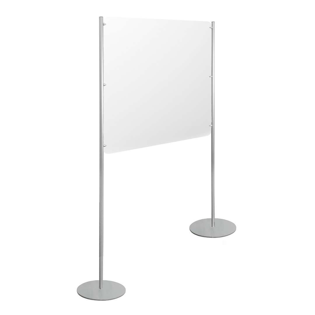 Pannello espositivo H 200 cm con dibond bianco 100x100H su basi tonde