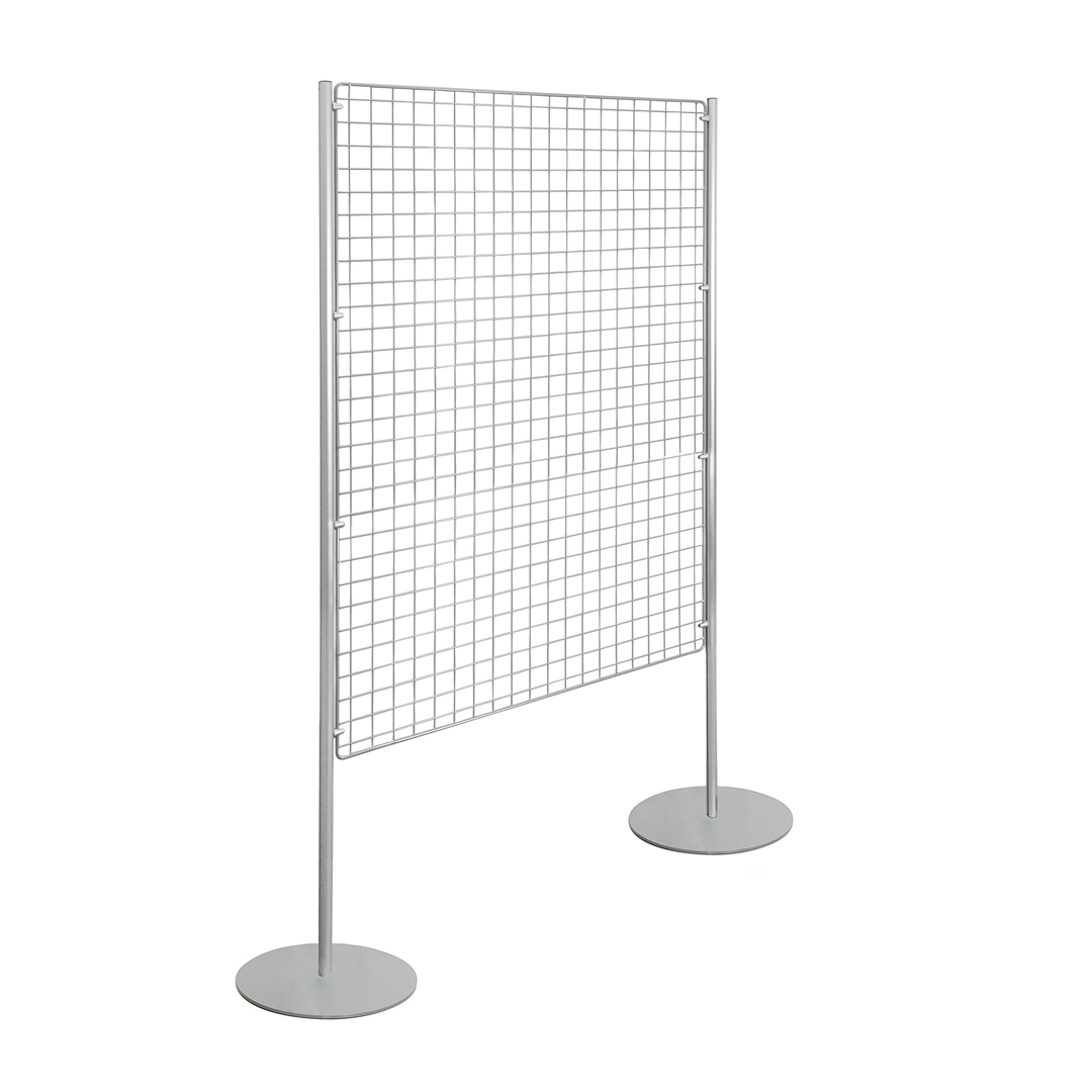 Pannello espositivo H 200 cm con griglia metallica 100x150H su basi tonde