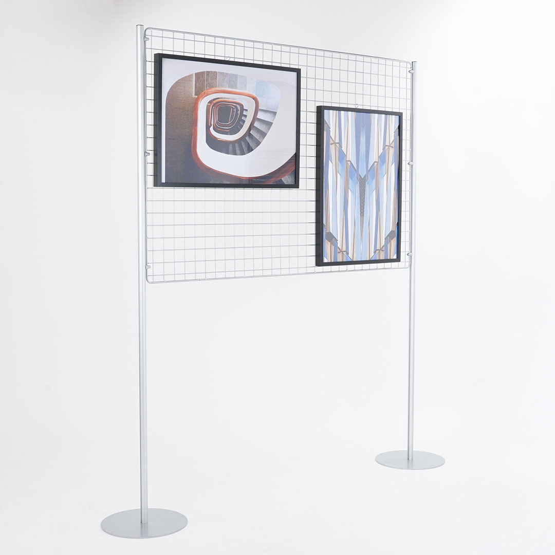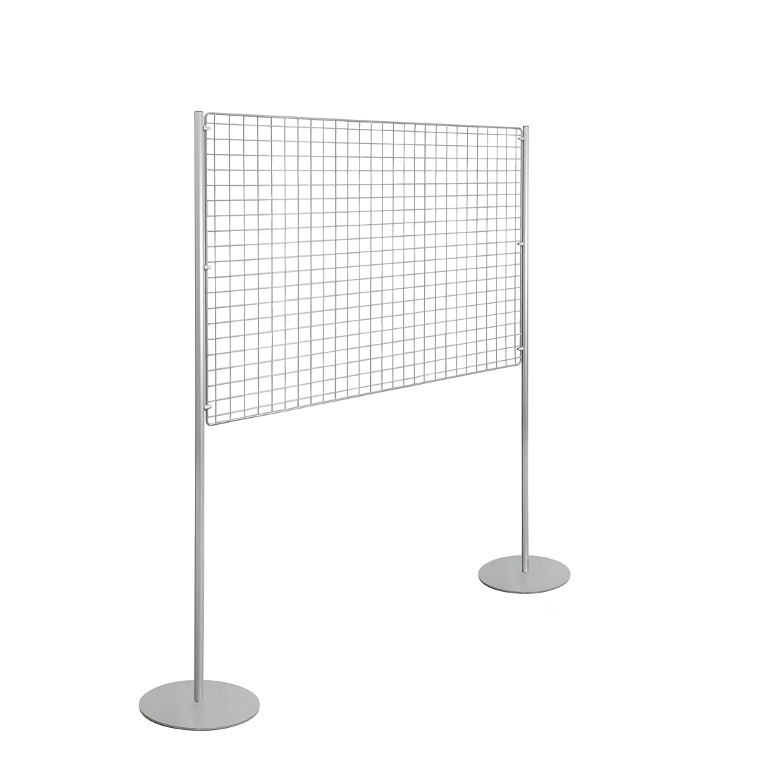Pannello espositivo H 200 cm con griglia metallica 150x100H su basi tonde