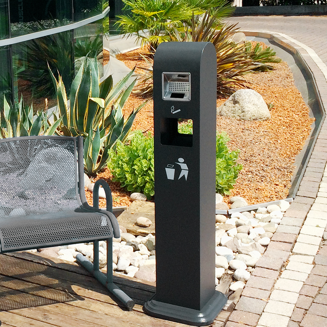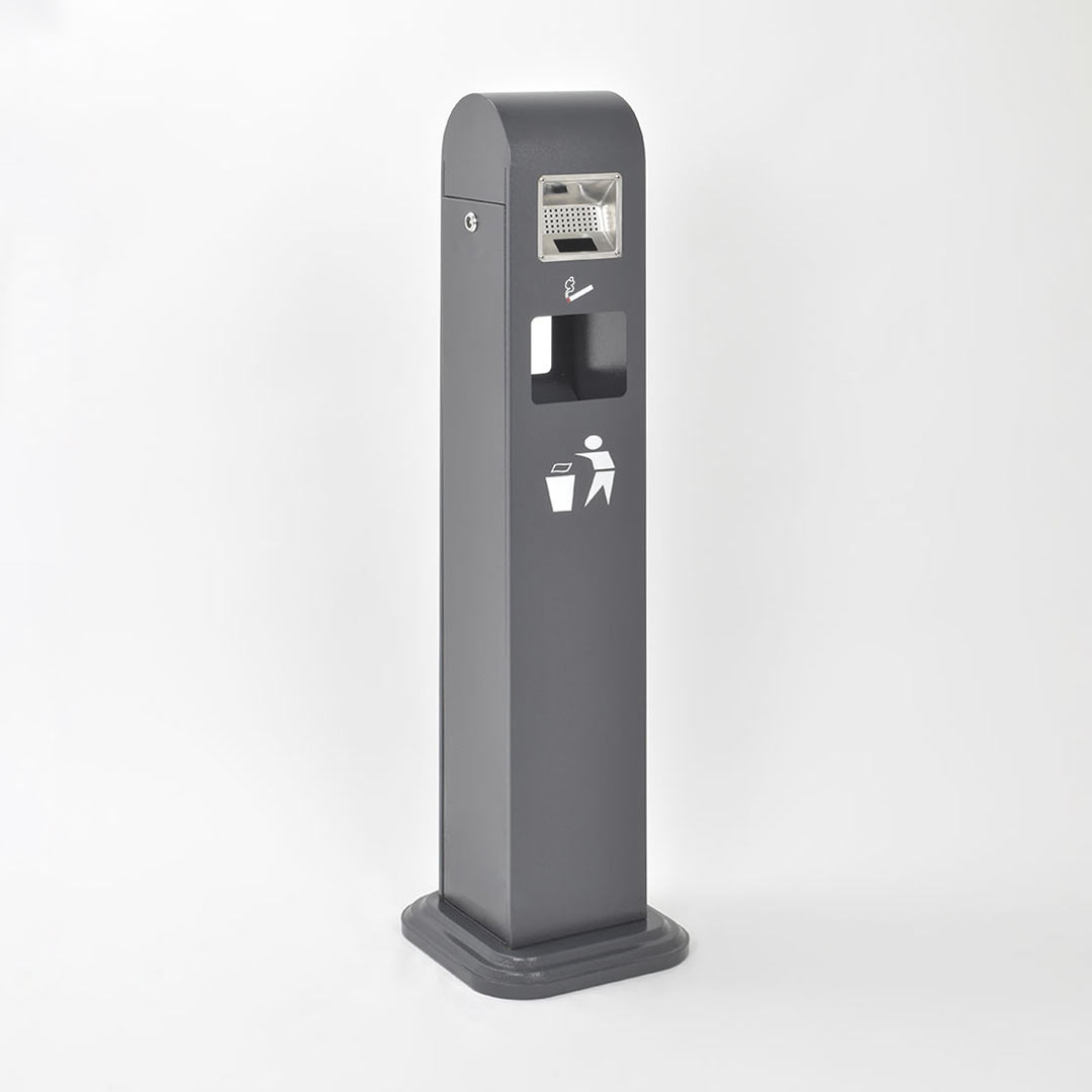 Il nostro cestino con posacenere bifacciale unisce funzionalità e design. A differenza dei semplici posaceneri da parete o da terra, questo modello offre anche un pratico cestino, rendendolo la scelta più completa e apprezzata per gli spazi esterni.