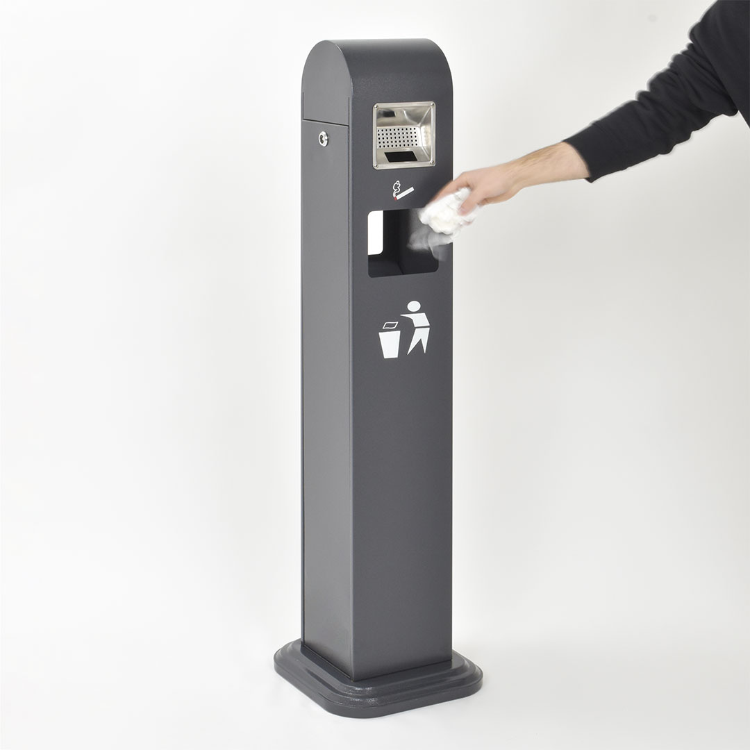 Posacenere a colonna antracite bifacciale con serratura laterale 34x31x120H cm