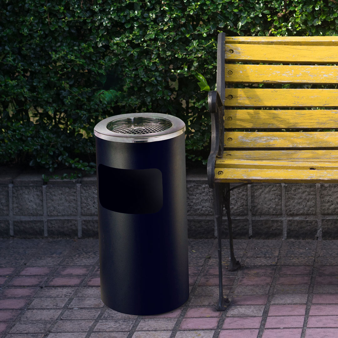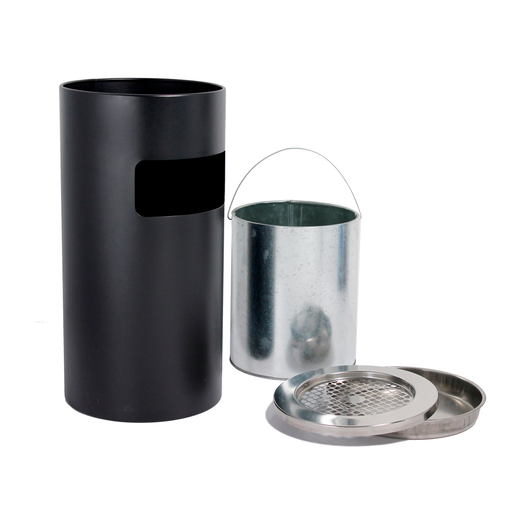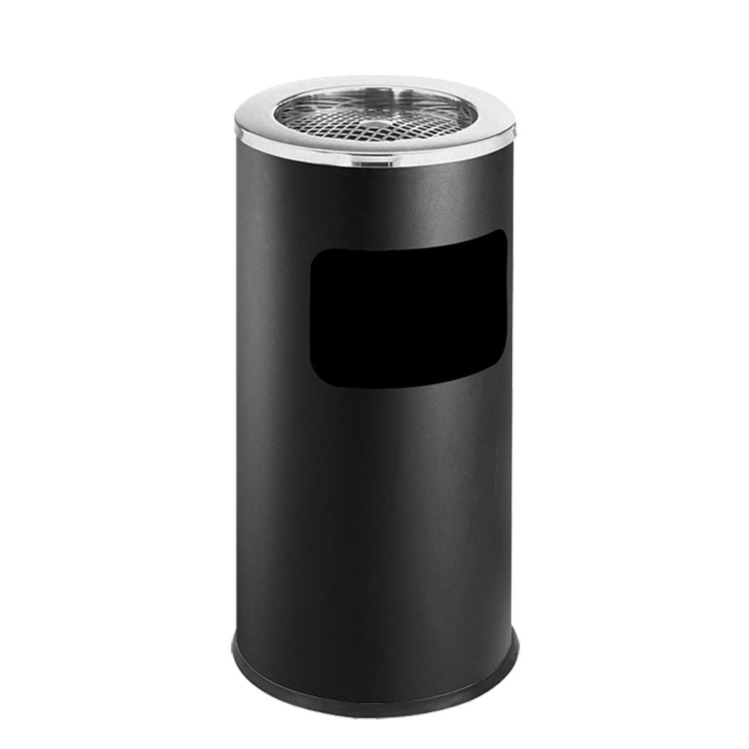 Cestino rotondo nero con apertura e posacenere 38x73H cm