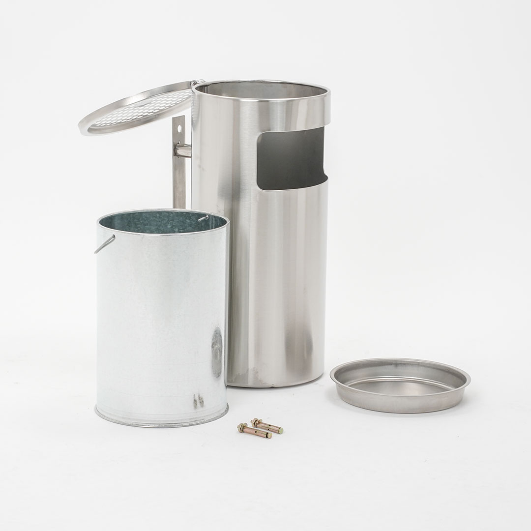 Posacenere da parete acciaio con cestino rotondo 25x51H cm