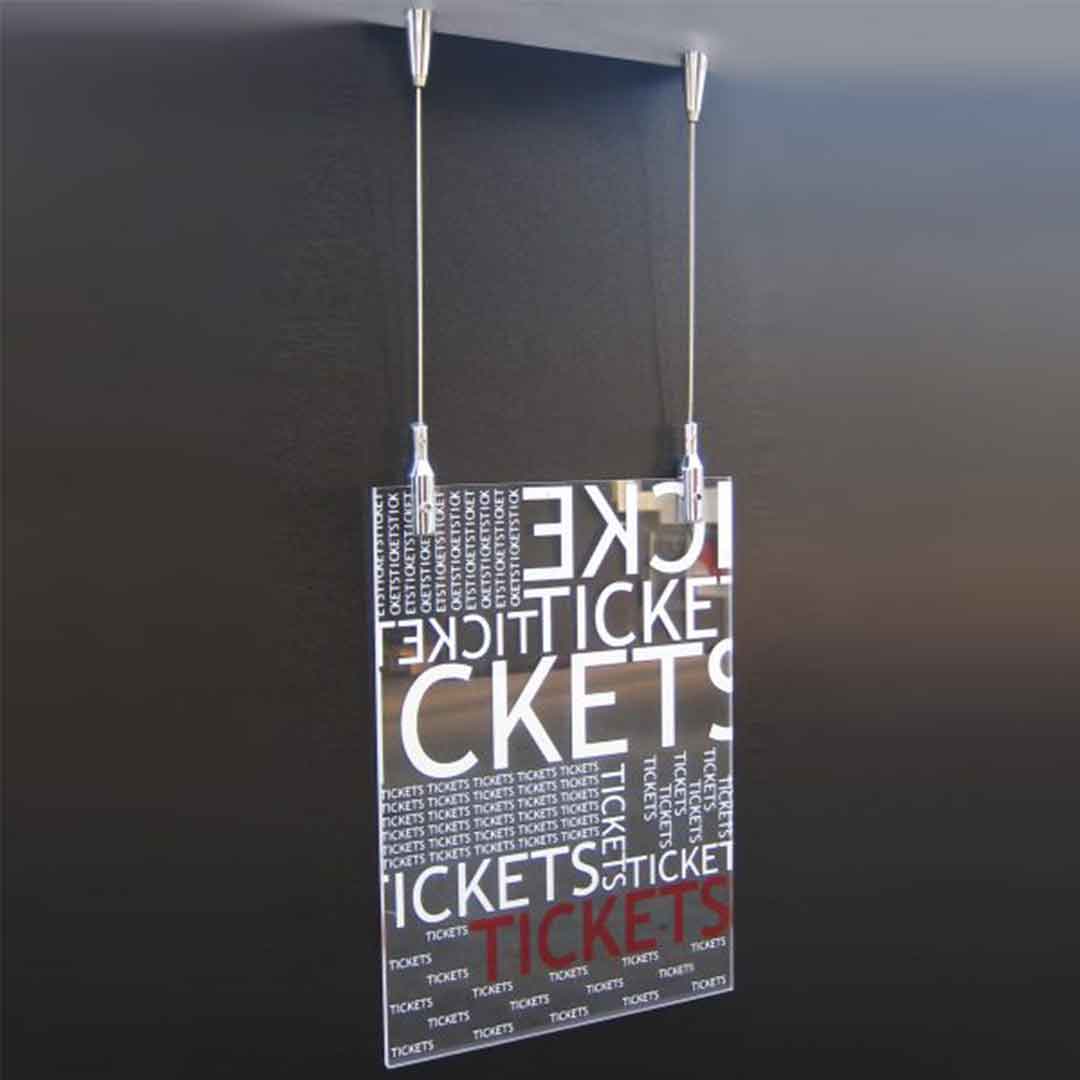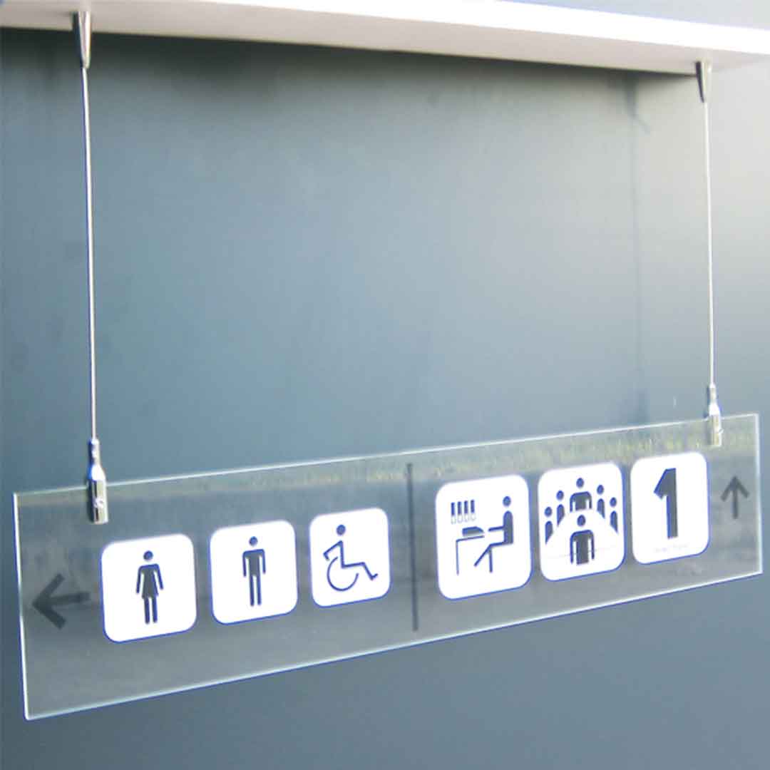 Questo aggancio a soffitto è la soluzione ideale per sospendere pannelli e targhe in modo elegante e professionale. Perfetto per indicare aree chiave della tua attività come: