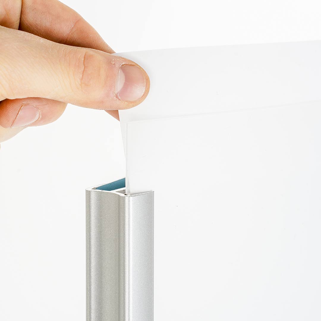 • Fogli in PVC trasparente e antiriflesso per una facile sostituzione della grafica