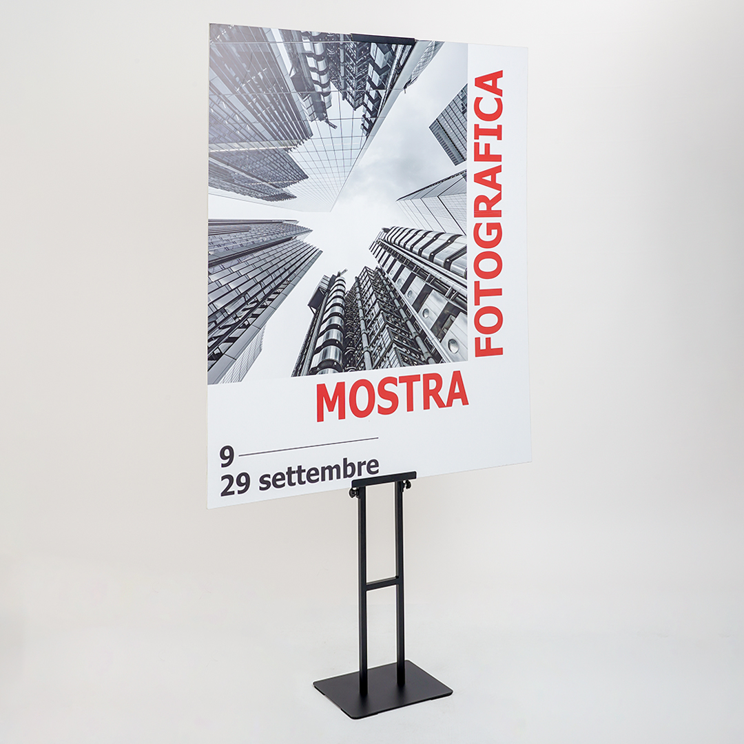 Aumenta l’impatto visivo della tua comunicazione con il nostro espositore bifacciale da terra in metallo. Progettato per esporre due pannelli pubblicitari, uno su ciascun lato, questo versatile supporto offre una visibilità a 360 gradi per il tuo messaggio. Le staffe regolabili in altezza si adattano a pannelli fino a 149 cm, con uno spessore massimo di 1,5 cm, garantendo flessibilità per diverse esigenze espositive.