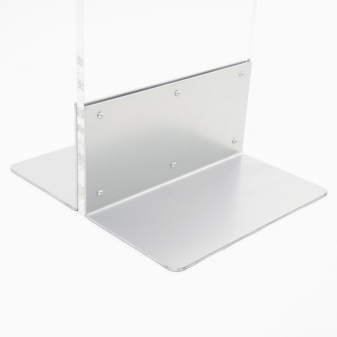 Scopri il nostro totem in plexiglass della linea SLIM con base a T 420 mm, la soluzione perfetta per comunicare con stile ed efficacia. Questa struttura moderna e raffinata è composta da una doppia semi-base a L in metallo verniciato silver, che accoglie un pannello in plexiglass trasparente da 20 mm di spessore.